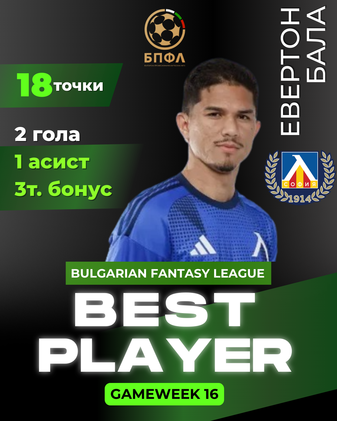 Кръг 16 в БПФЛ Фентъзи вече е в историята, имаше обаче изобилие от събития, интересни моменти, пропуснати дузпи, червени картони и сериозна драма в някои от двубоите. След кръг 16 Евертон Бала става един от играчите постигнали най-много точки в един мач - 18 т. и така стана играч номер 1 в кръга. Имаше смяна на цените на играчите, имахме и страхотен кръг с предложенията ни от отбора на скаута, но за това малко по-късно. Сега ще продължим с обзора на кръг 16 и всичко най-интересно, което се случи.