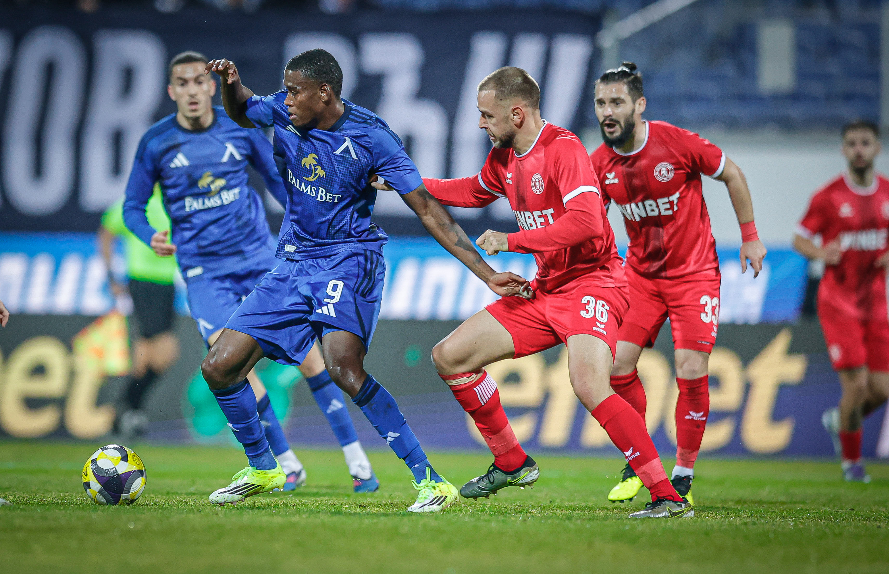 Екшънът започна в 16-ата минута. Първо Мартин Петков от гостите стреля опасно с глава на сантиметри в аут, а в ответната атака Мазир Сула разтресе напречната греда с мощен шут от 25 метра. До края на частта вратарят на Ботев Марин Орлинов се превърна в герой, спасявайки удари на Хуан Переа и Евертон Бала, запазвайки нулевото равенство до почивката.